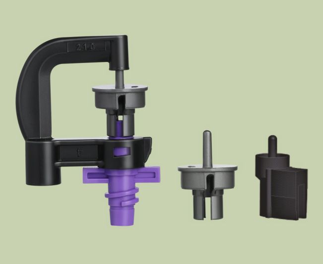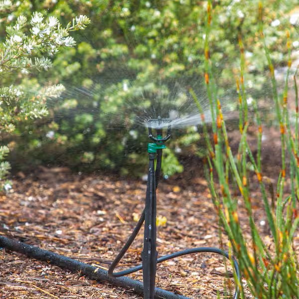 Micro irrigatore in kit premontato, testina rotante per un basso consumo di acqua e una bagnatura omogenea.